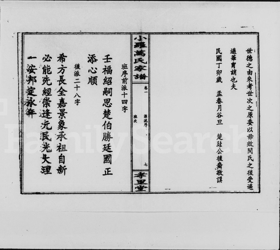 │小罗万氏楚能房谱, 1, 卷首_ 谱序 目录 谱引 凡例 家训 碑传 班序 修谱名目 祠记 墓图等, 1945.zip 40.47 MB