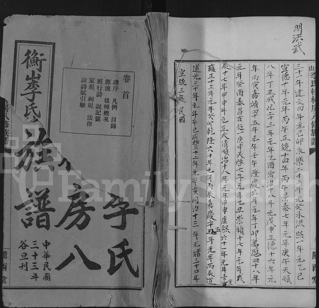 001衡山李氏桂林房八修族谱, 1, 卷1_ 像赞 谱序 凡例 目录 源流 系图 江西 宪公起 派名 衡山系图 祠略 家规 诗词, 1404-1944.zip 127.44 MB