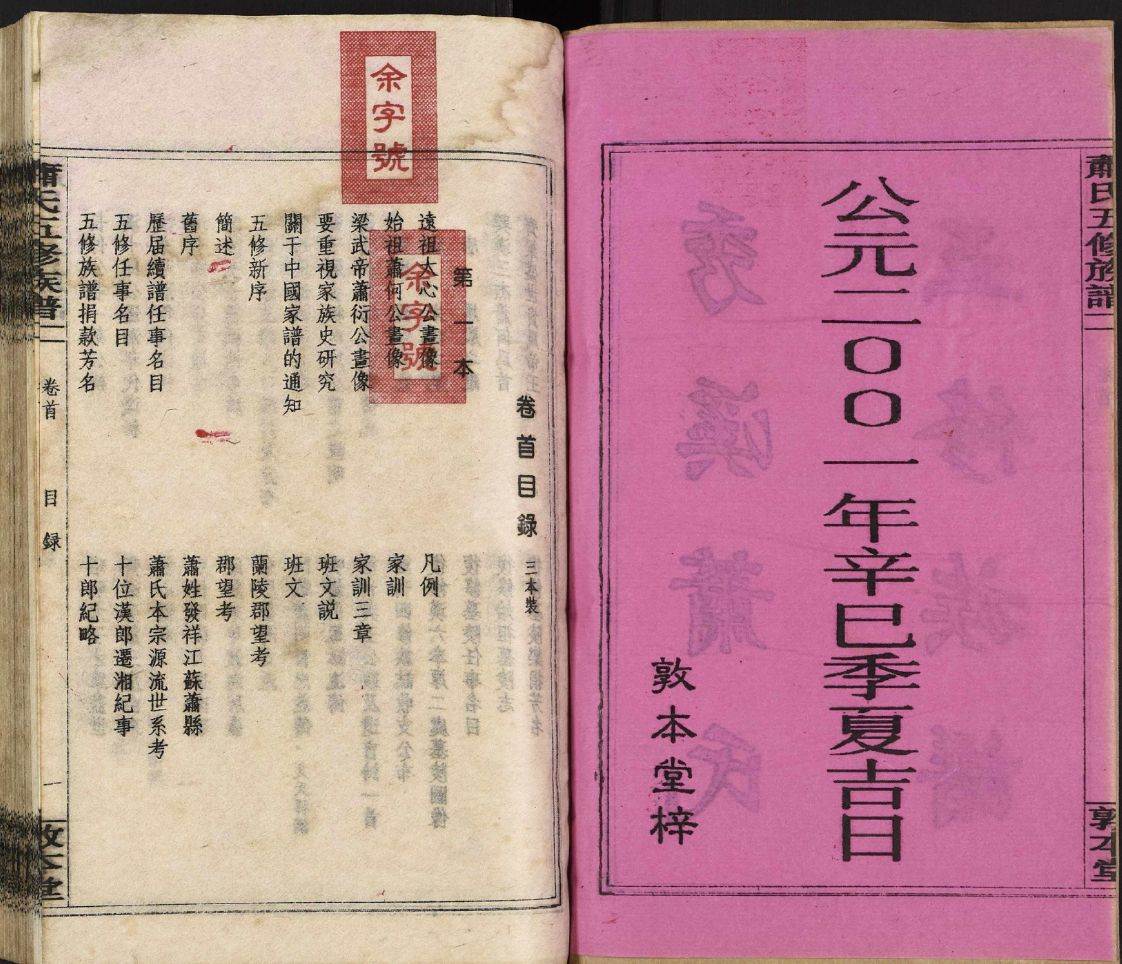 0001秀溪萧氏五修族谱_ 卷首第1本_ 目录(图像3-5)班文(图像46-47), v 1, 2001.zip 110.69 MB