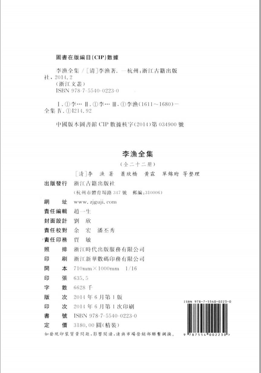 020李渔全集(清)李渔著;王翼奇等点校(2014)第二十册.pdf 149.41 MB