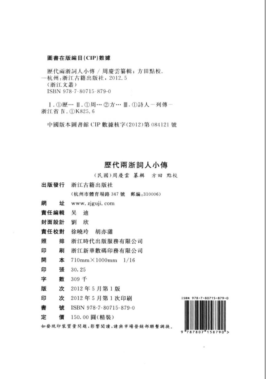 出版社:浙江古籍出版社
