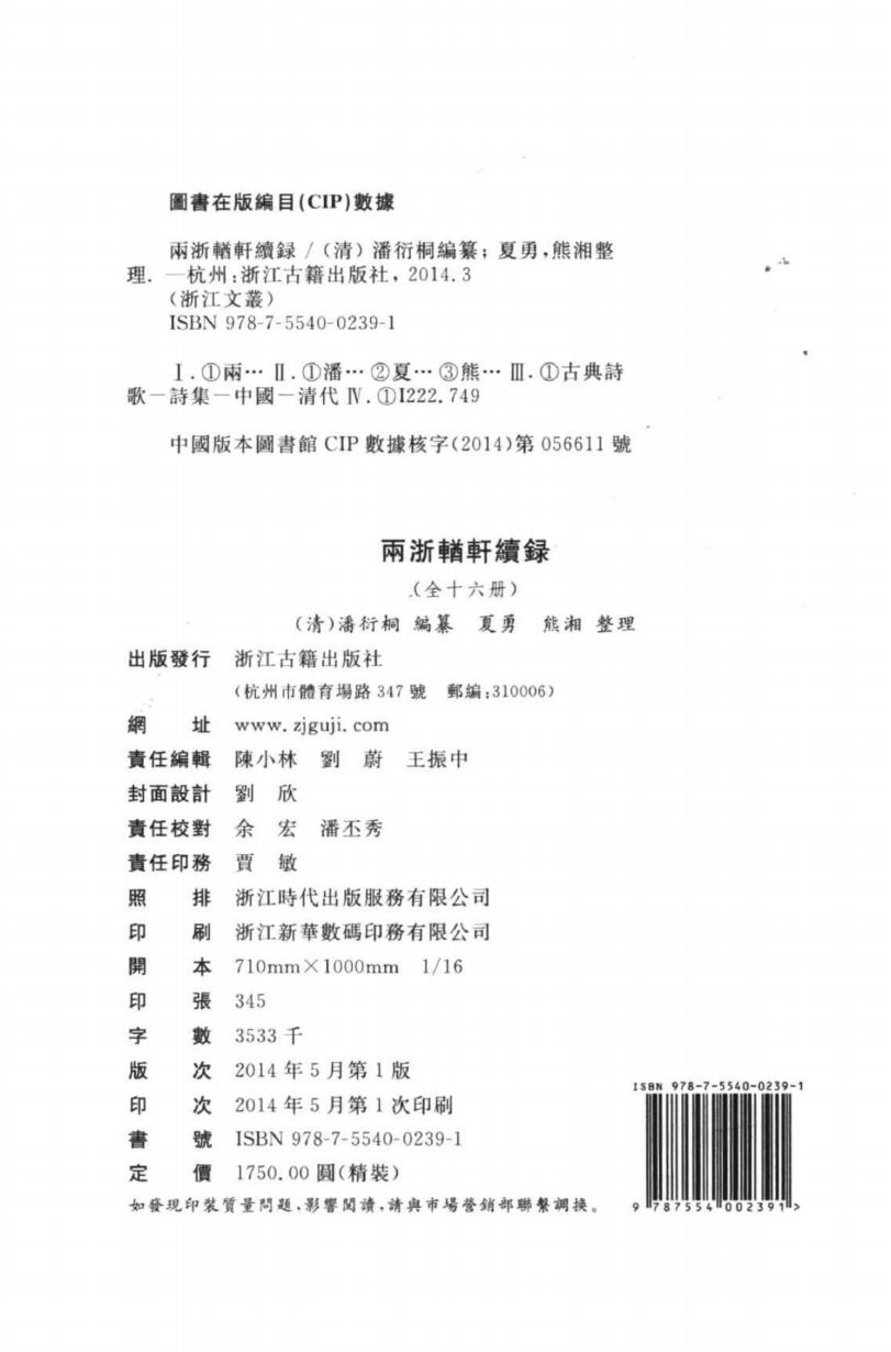 010两浙輶轩续录(清)潘衍桐编纂;夏勇,熊湘整理(2014)第十册.pdf 137.42 MB