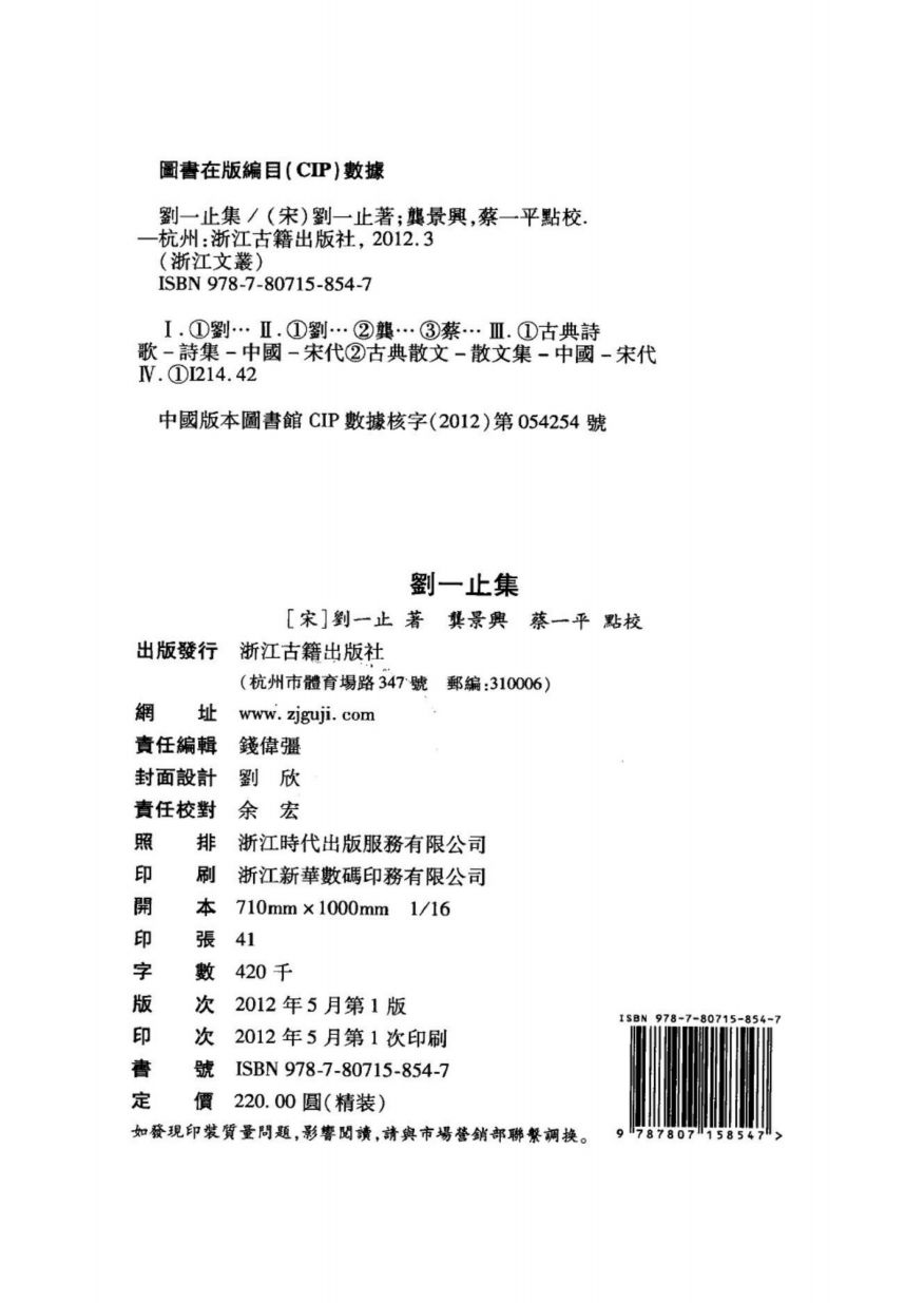 001刘一止集 (宋)刘一止撰;龚景兴,蔡一平点校(2012)上册.pdf 129.28 MB