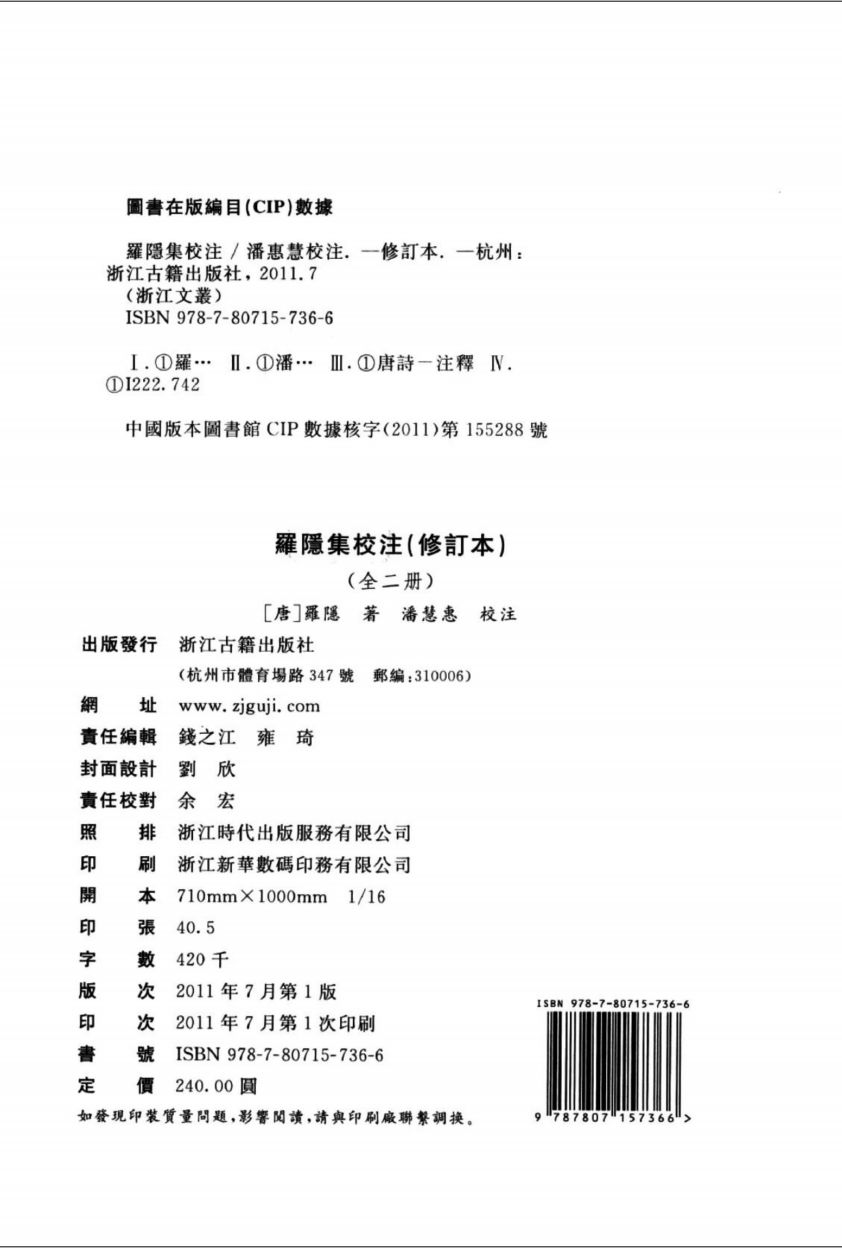 002罗隐集校注 修订本(唐)罗隐著;潘慧惠校注(2011)下册.pdf 93.60 MB