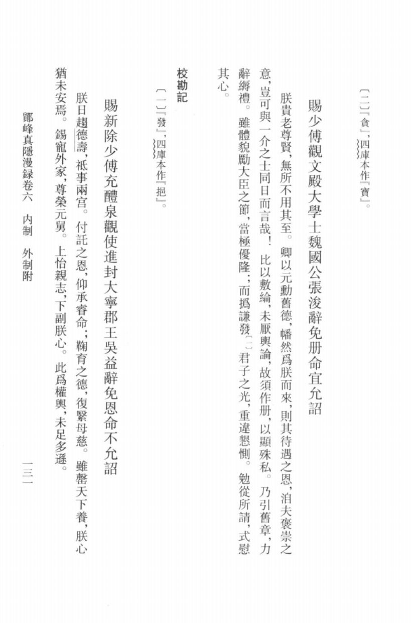 文丛中所收文献,以点校后排印或据原本影印两种方式出版。对文献的整理,只据底本与参校本、参校资料等进行校勘标点,对底本文字的讹、夺、衍、倒作正、补、删、乙,有需要说明的问题,则作出校记,—般不作注释。每种图书,在不与本文丛编纂总则冲突的情况下,可以根据本著作实际情况,另行制定整理凡例。