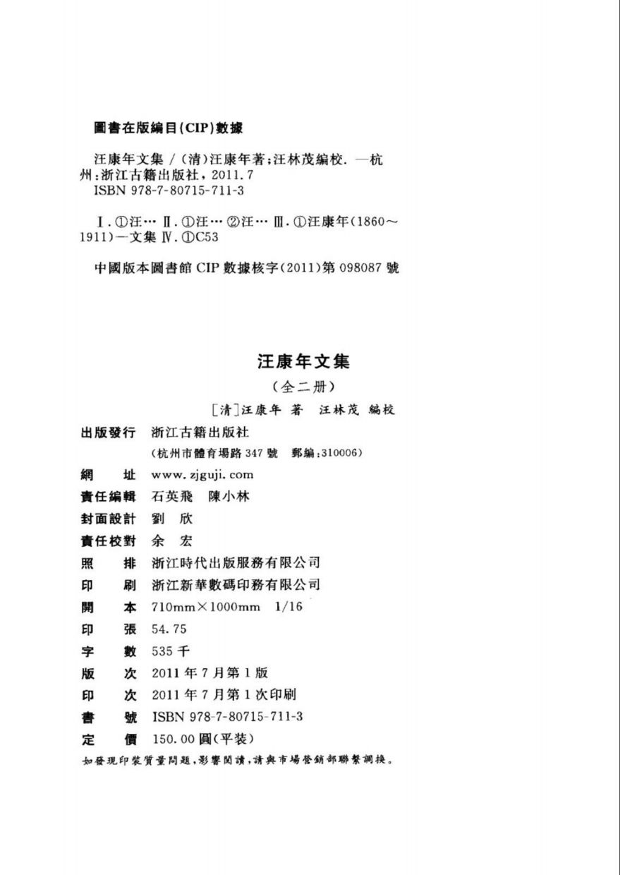 001汪康年文集 上(清)汪康年著;汪林茂编校.浙江文献集成.浙江古籍(2011).pdf 203.75 MB