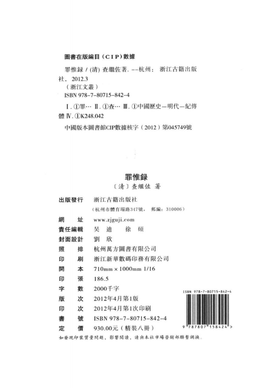 008罪惟录(清)查继佐著;倪志云,刘天路点校(2012)第8册.pdf 148.50 MB |
