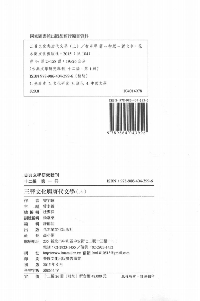 古典文学研究辑刊(12编)01 总目;三晋文化与唐代文学(上)(智宇晖著,2015)_14493604.pdf 121.40 MB
